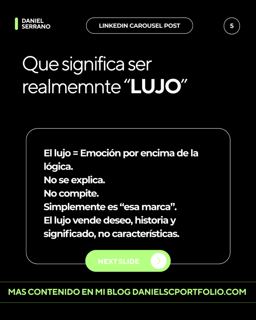 Las marcas luxury compiten en deseo. No necesitan justificar su precio. El precio forma parte del mensaje: exclusividad, estatus y aspiración.