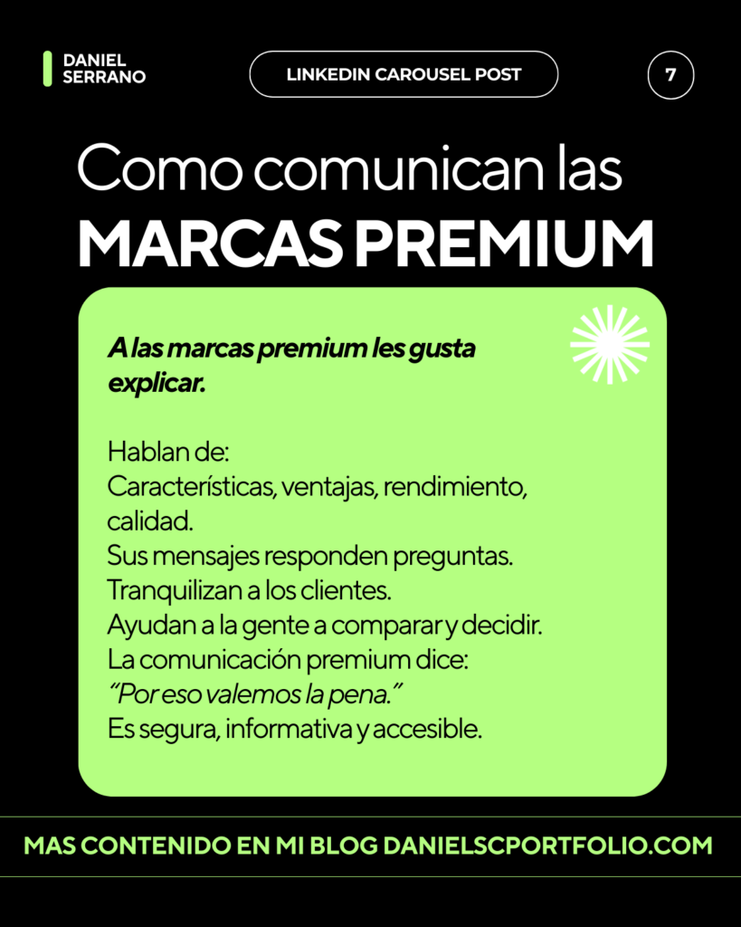 Las marcas premium compiten en valor. Su propuesta se basa en ofrecer más: mejor calidad, mejor rendimiento, mejor experiencia. El precio elevado se justifica y se explica.